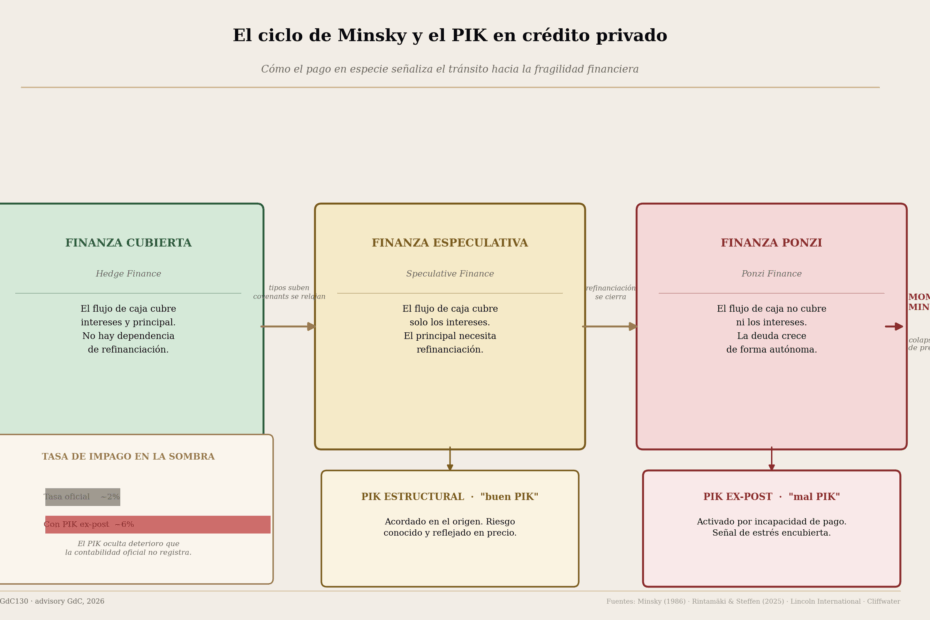 Hay un número que no aparece en los titulares pero que los analistas de crédito privado llevan meses mirando con incomodidad: el porcentaje de préstamos en los que el prestatario ya no paga los intereses en efectivo. El instrumento se… Leer más »Crédito Privado y el Ciclo Minsky